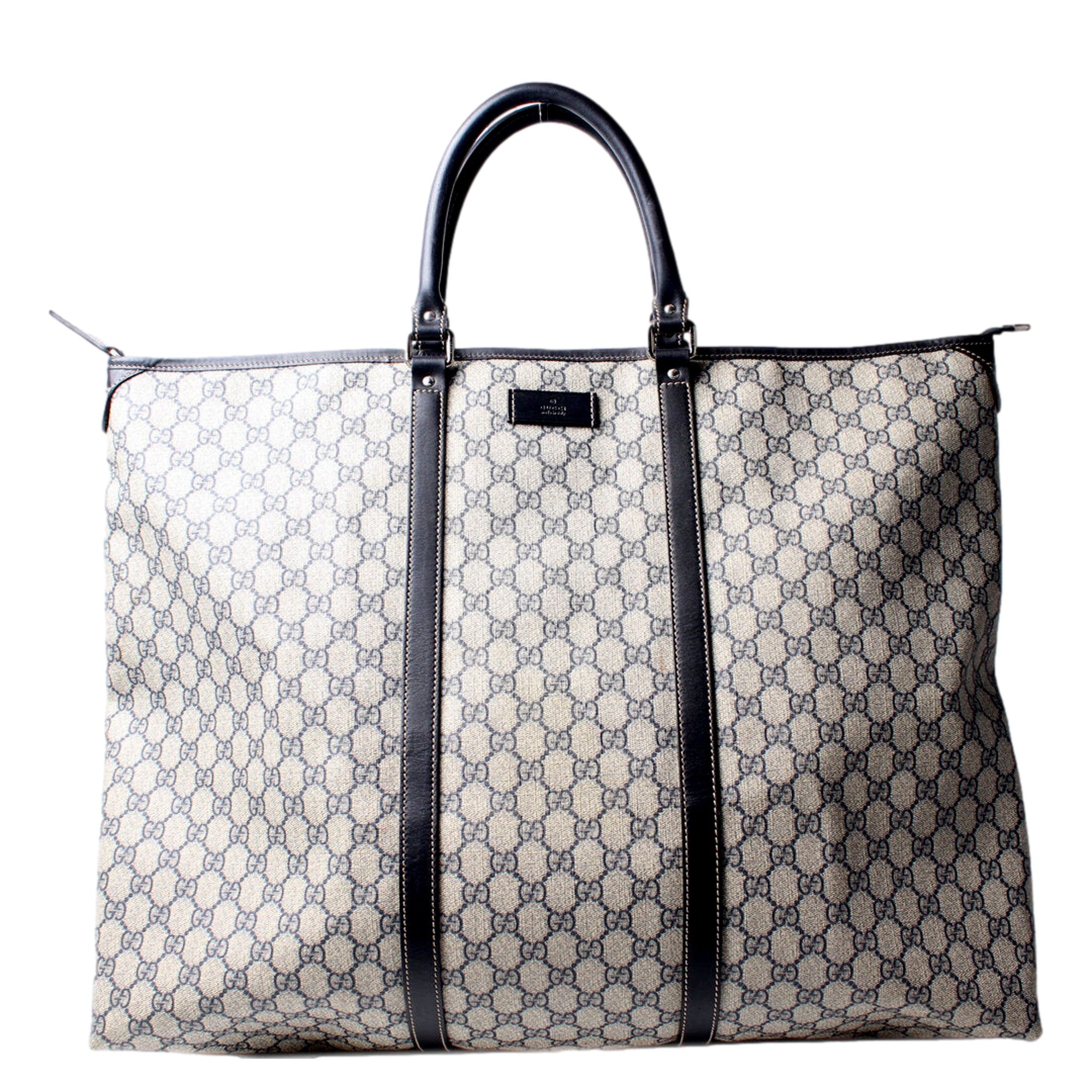 Travel in timeless sophistication with the Gucci GG Supreme Extra Large Joy Tote. Crafted from the iconic GG Supreme coated canvas in an elegant blue hue, this statement bag blends luxury with functionality. Its spacious silhouette and refined leather trim make it perfect for overnight escapes or chic daily use. Finished with polished silver-tone hardware and the signature Gucci detailing, this tote embodies effortless Italian craftsmanship and contemporary elegance.