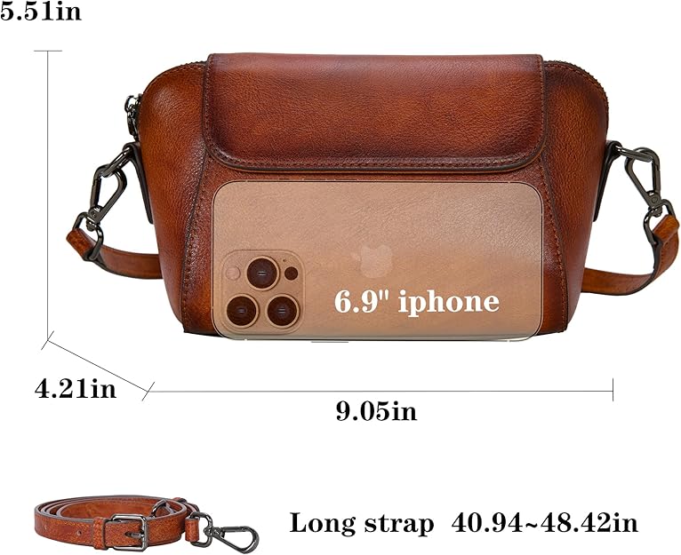- Compact & Lightweight Design: Measures 9.05’’L x 4.21’’W x 5.51’’H with a 40.94’’-48.42’’ adjustable strap—Lightweight leather purse which is ideal for hands-free errands, travel, or shopping.