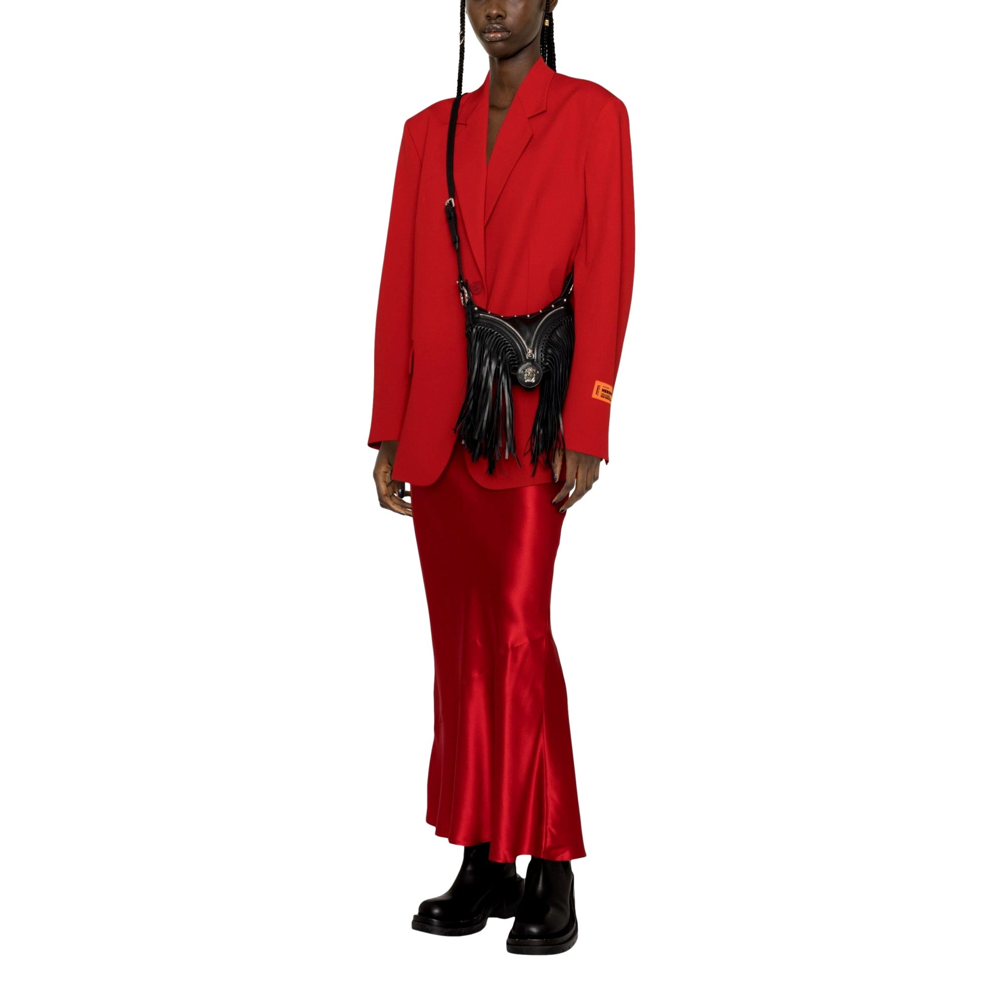 Indulge in luxury with the Versace Repeat Fringe La Medusa Mini Hobo Shoulder Bag. Crafted from exquisite black calf leather, this bag showcases the iconic Medusa Head motif. It also features silver-tone hardware throughout the bag. The top zip fastening ensures your belongings are secure, while the single top handle and shoulder strap offer versatile carrying options for every occasion. Inside, you’ll find an interior zip pocket. Elevate your ensemble with the unmistakable allure of Versace, embodied in this stunning La Medusa Mini Hobo Shoulder Bag.